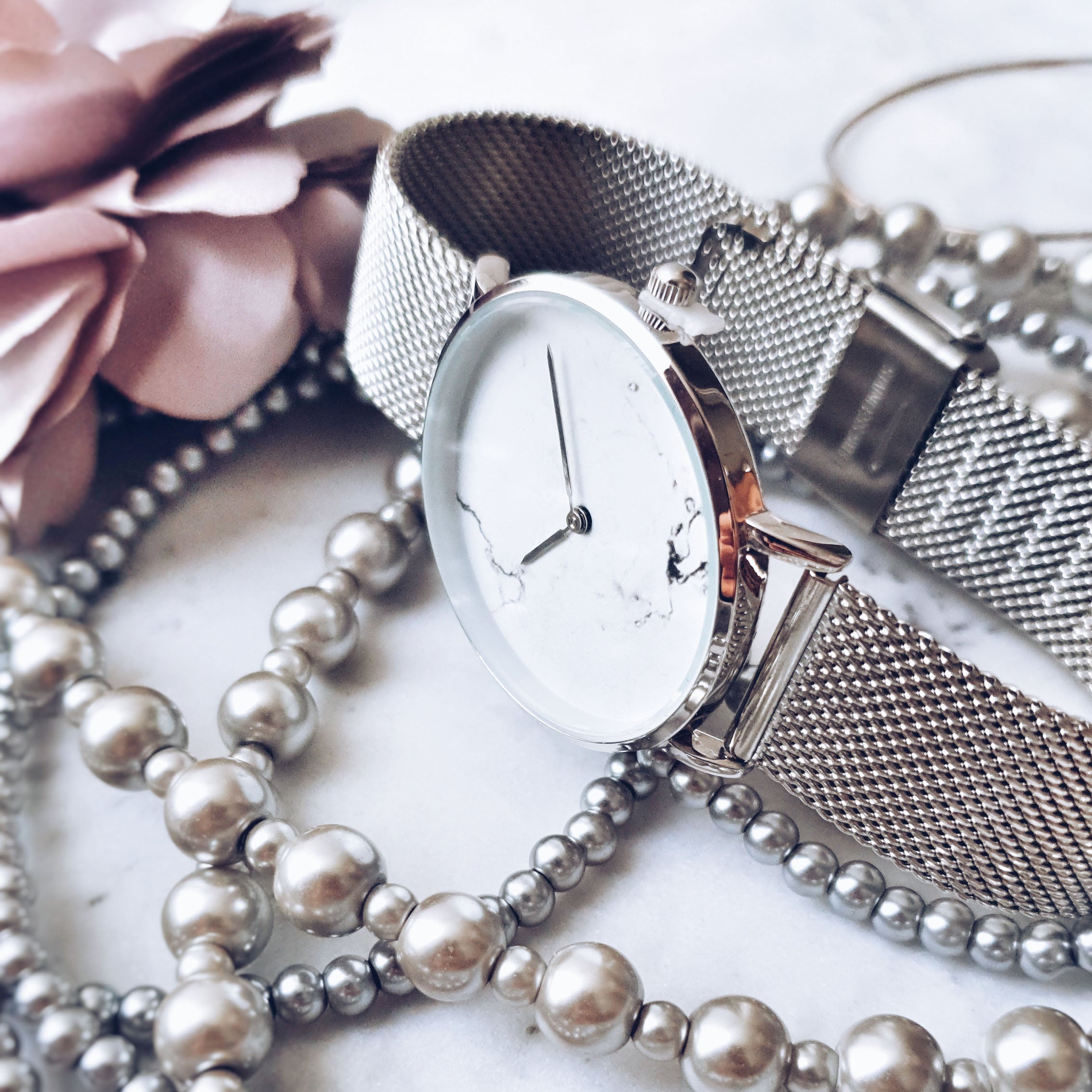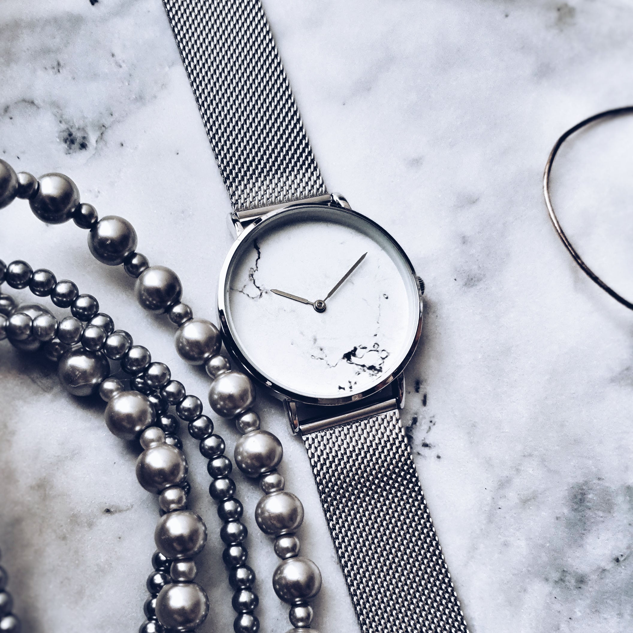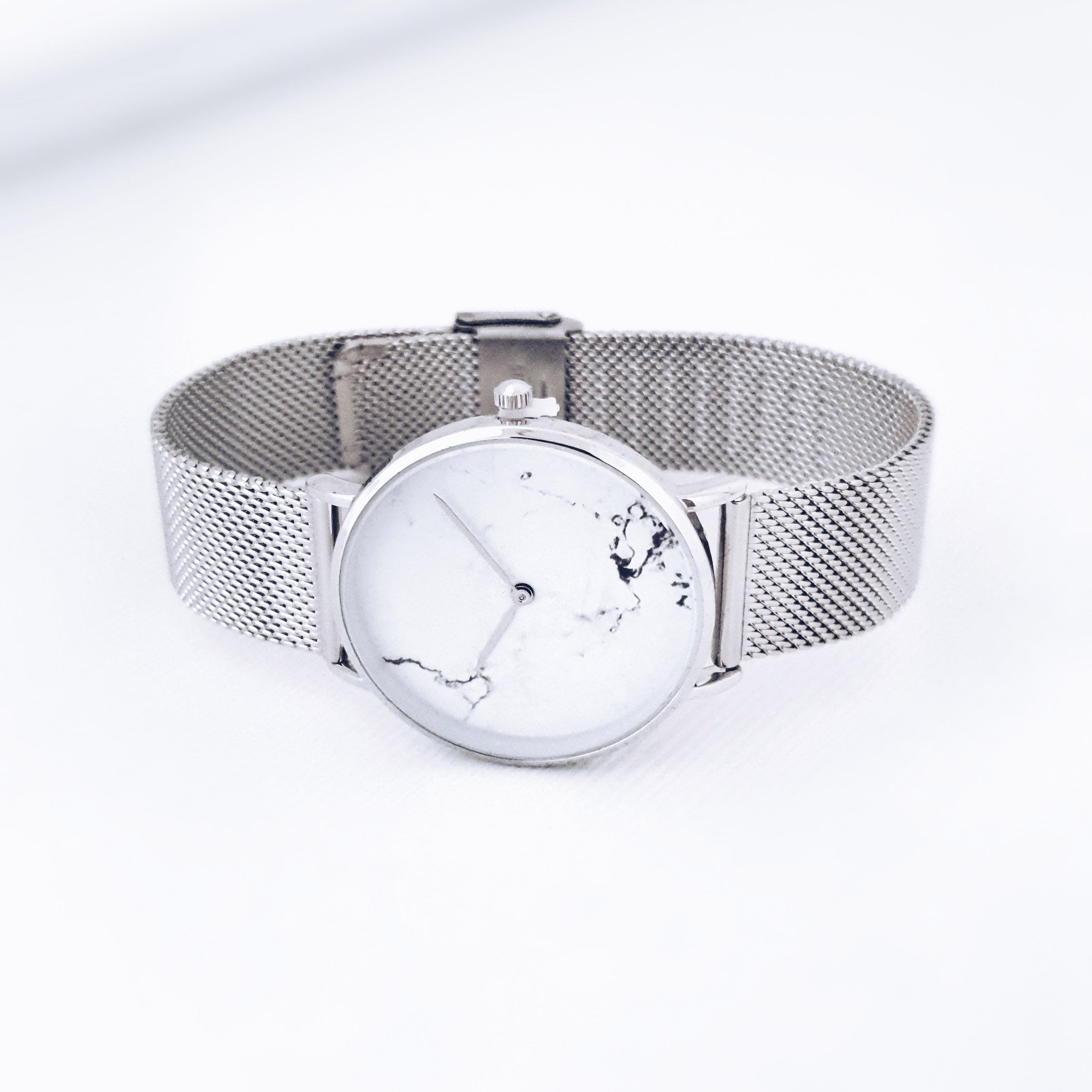 Be inspired by the exquisite and contemporary marble design of the Marcella watch. Loyal to our minimal aesthetic, this collection features a 36mm case with a stainless steel mesh strap for a bold and stylish look. True to our philosophy, this watch has no visible branding logos, for the clean, sophisticated look.